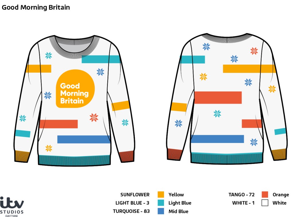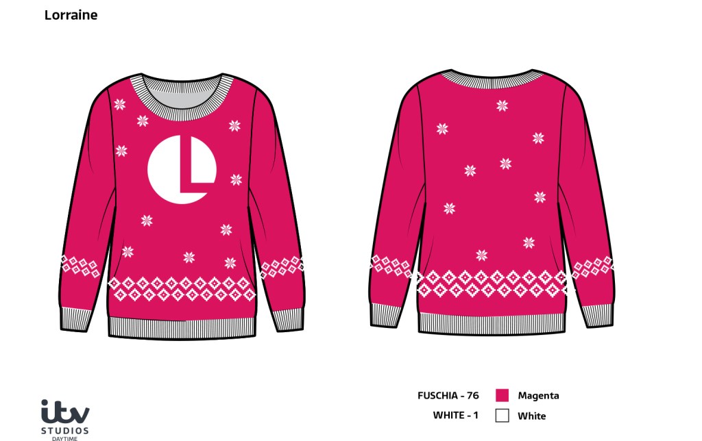 An incredibly fun project where I designed and branded bespoke Christmas jumpers for our on-screen talent. Each design was tailored to the show, adding a playful and personal festive touch and I think the joy came through when the presenters put them on for the first time during the shoot.